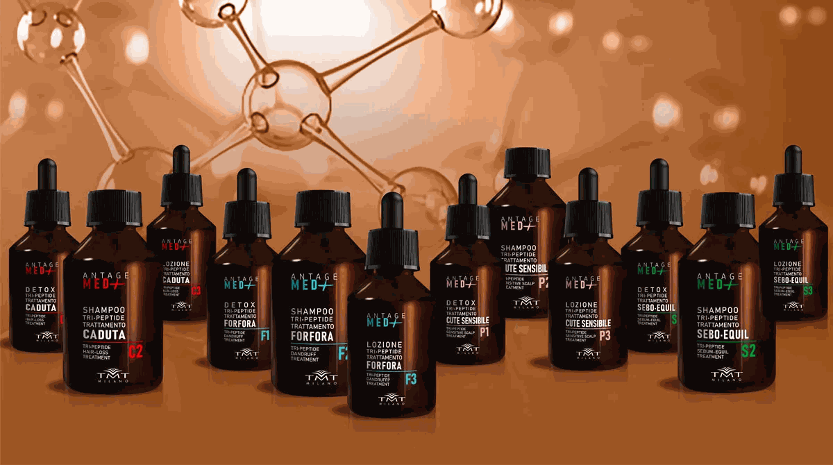 Dai laboratori TMT Milano la nuova routine ANTAGE MED+ per contrastare i più noti problemi dei capelli, grazie all'eccezionale efficacia della catena molecolare Tri-Peptide unita a nuovi elementi naturali. Le tre fasi dei trattamenti ANTAGE MED+ (Detossinazione / Purificazione / Stimolazione) ad azione topica, agiscono direttamente sul cuoio capelluto per contrastare l'anomalia e riportare la condizione ottimale per capelli sani, forti e più folti.