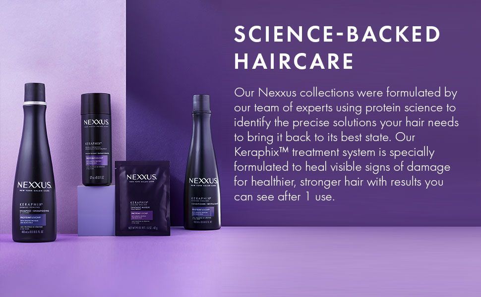 Nexxus Keraphix Keratin Protein Hair Collection è stato specificamente progettato per capelli gravemente danneggiati e doppie punte da decolorazione, styling chimico, trattamenti di colore e calore. Infusi con il nostro esclusivo PROTEINFUSION™ con proteine della cheratina e riso nero, questi prodotti per capelli alla cheratina guariscono visibilmente i segni dei danni già dal primo utilizzo.